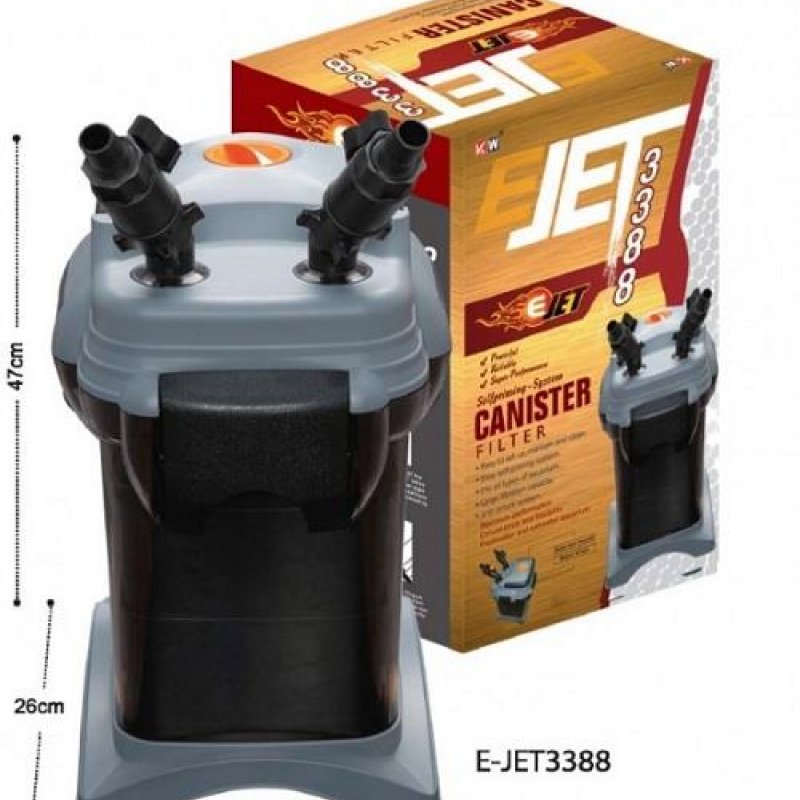Ejet 3388 Dış Filtre, 350 litre ile 450 litre arası akvaryumlar için kullanıma uygun dış filtredir. 15 Watt elektrik tüketimi ile çalışmaktadır.